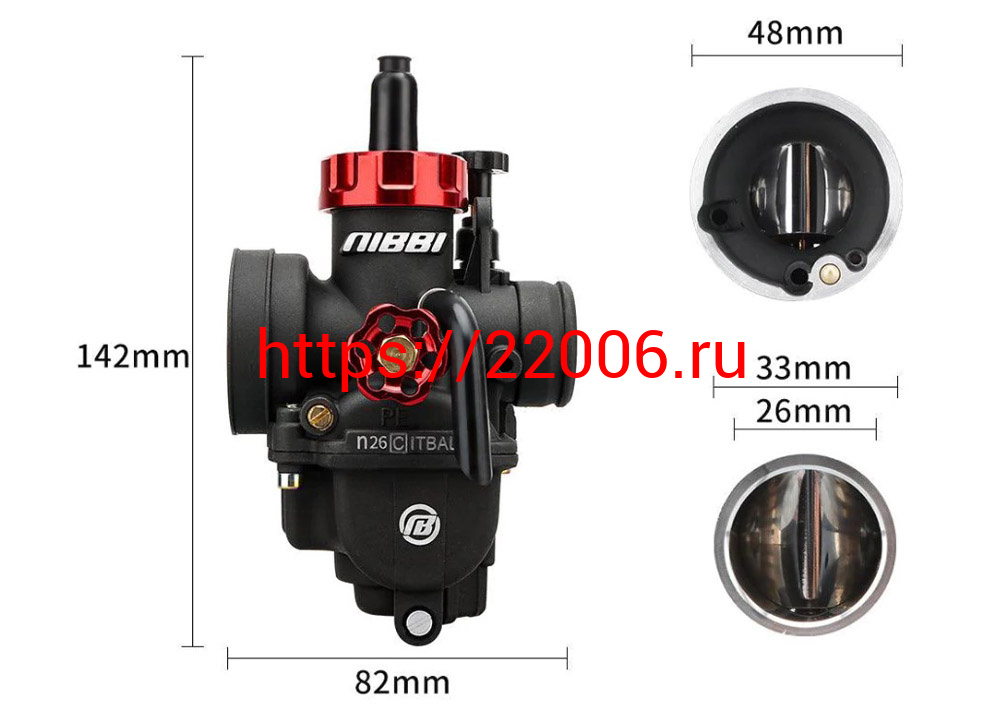 - Карбюратор NIBBI Racing PE26 (YJ), реком.двиг. 140-160 см3 (вход/выход 26 и 48 мм) в Реже недорого