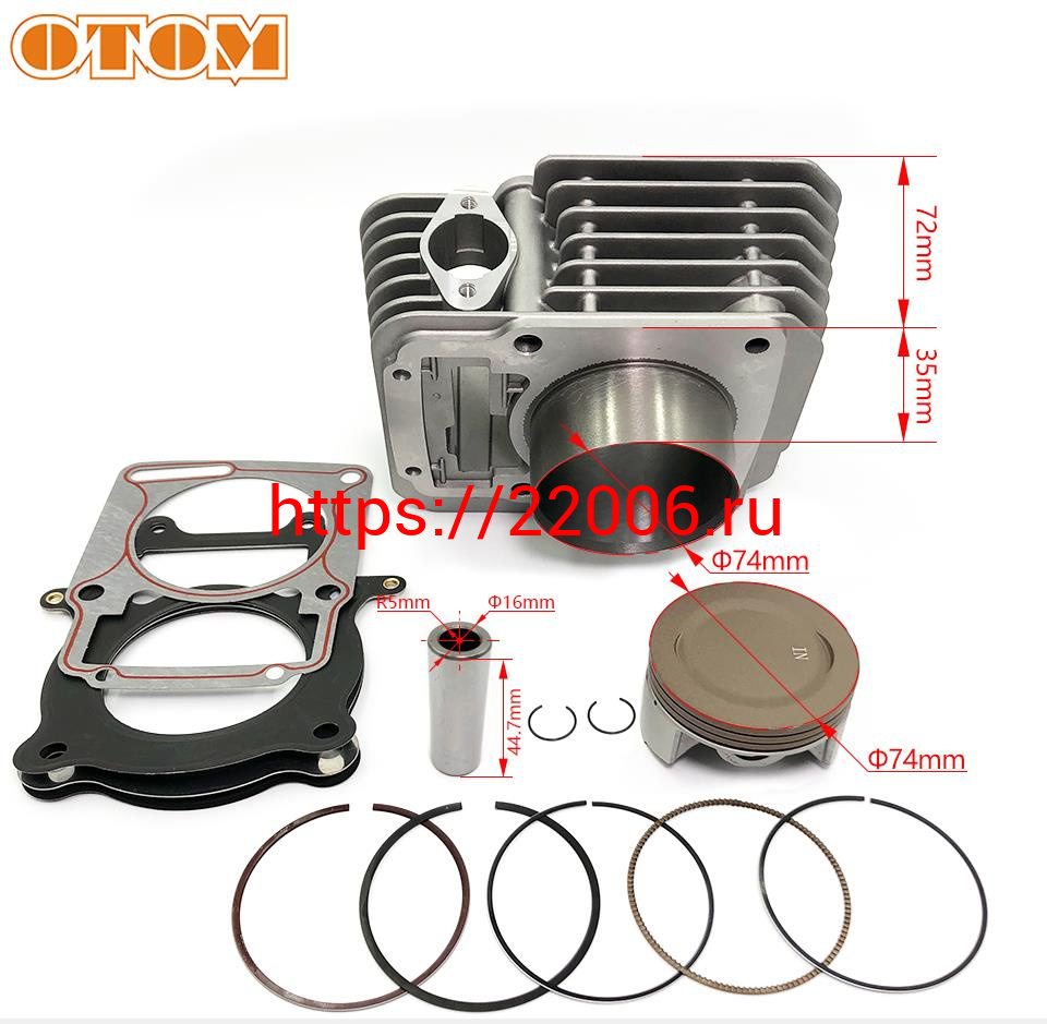 - Цилиндр в сборе с поршнем ZS172FMM-3A, 74мм, тюнинг ZS174FMM (CB250-F) (big bore) OTM в Реже недорого