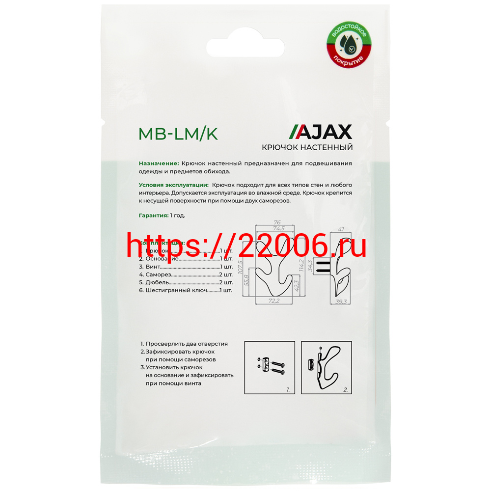 - Крючок Ajax (Аякс) настенный MB-LM/K-005 SN матовый никель в Реже недорого