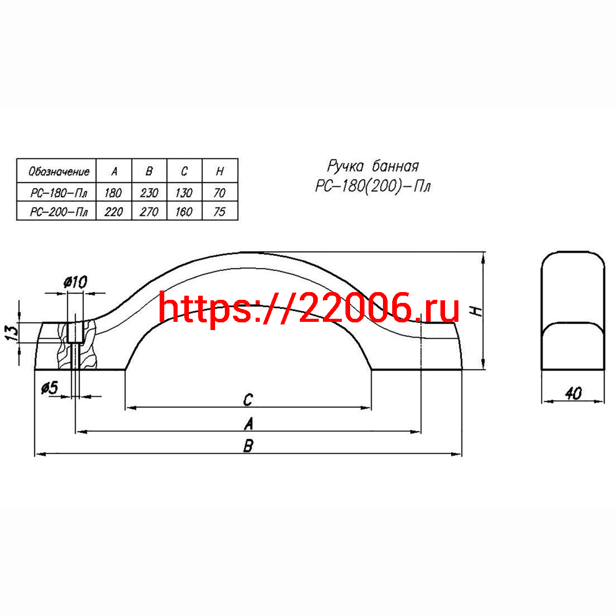 - Ручка-скоба банная РС-180 плоская в Реже недорого