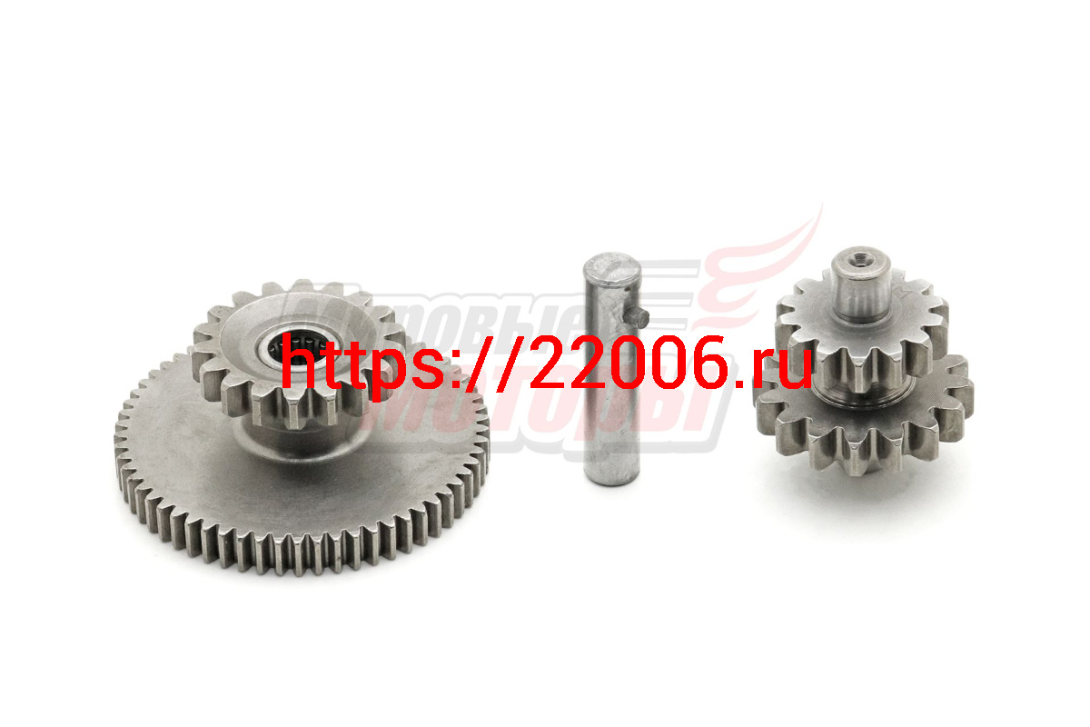 - Вал промежуточный привода электростартера(двойной) в компл. с шестер(двойной)(18/62+14/16 зуб, для электр-в с 9 шлицами)157FMI(125сс)-167FMM(250сс) в Реже недорого