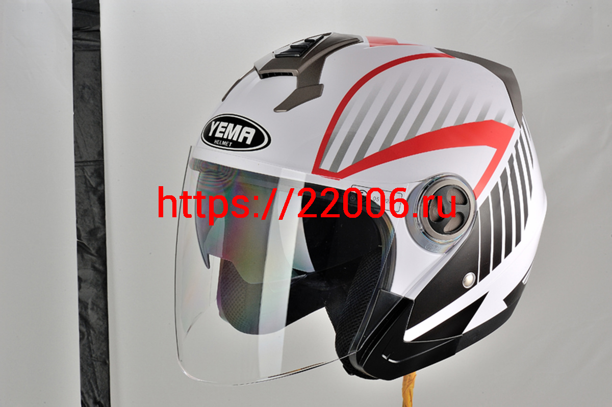 - Шлем открытый YM-623 "YAMAPA", бело-красный, р-р XL(с АНТИкр,внутр солнцезащитн очки,прозр. визор,) в Реже недорого